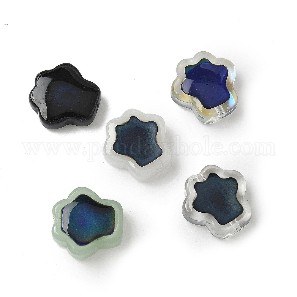 • Прозрачный Стеклянные бусины, чувствительные к температуре бусины, меняющие цвет, цветок, прозрачные, 13.5x13.5x5 мм, отверстие : 1.3 мм