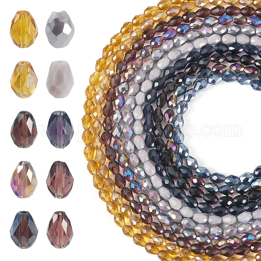 10нити 10 цветные прозрачные стеклянные бусины нити, граненые, слеза