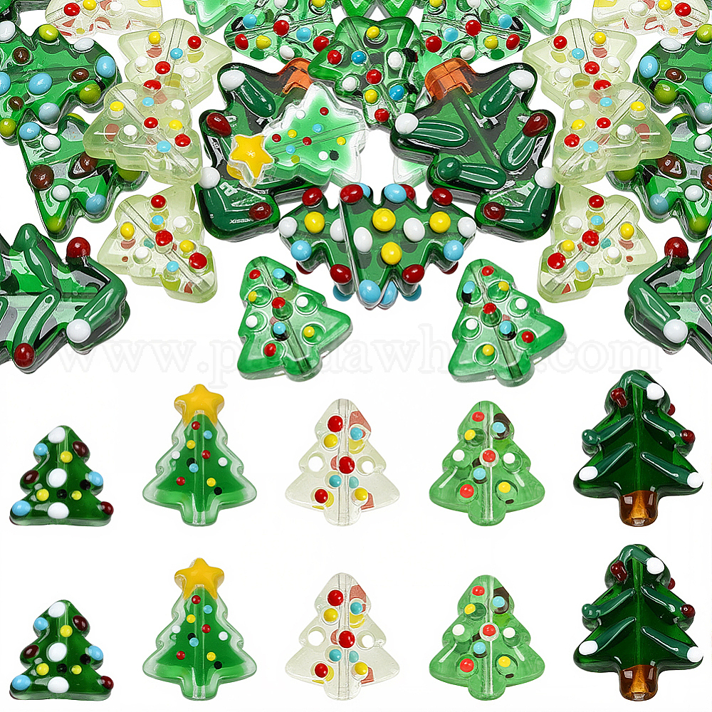 20 шт. 5 стили стеклянные эмалевые бусины, Рождественские елки