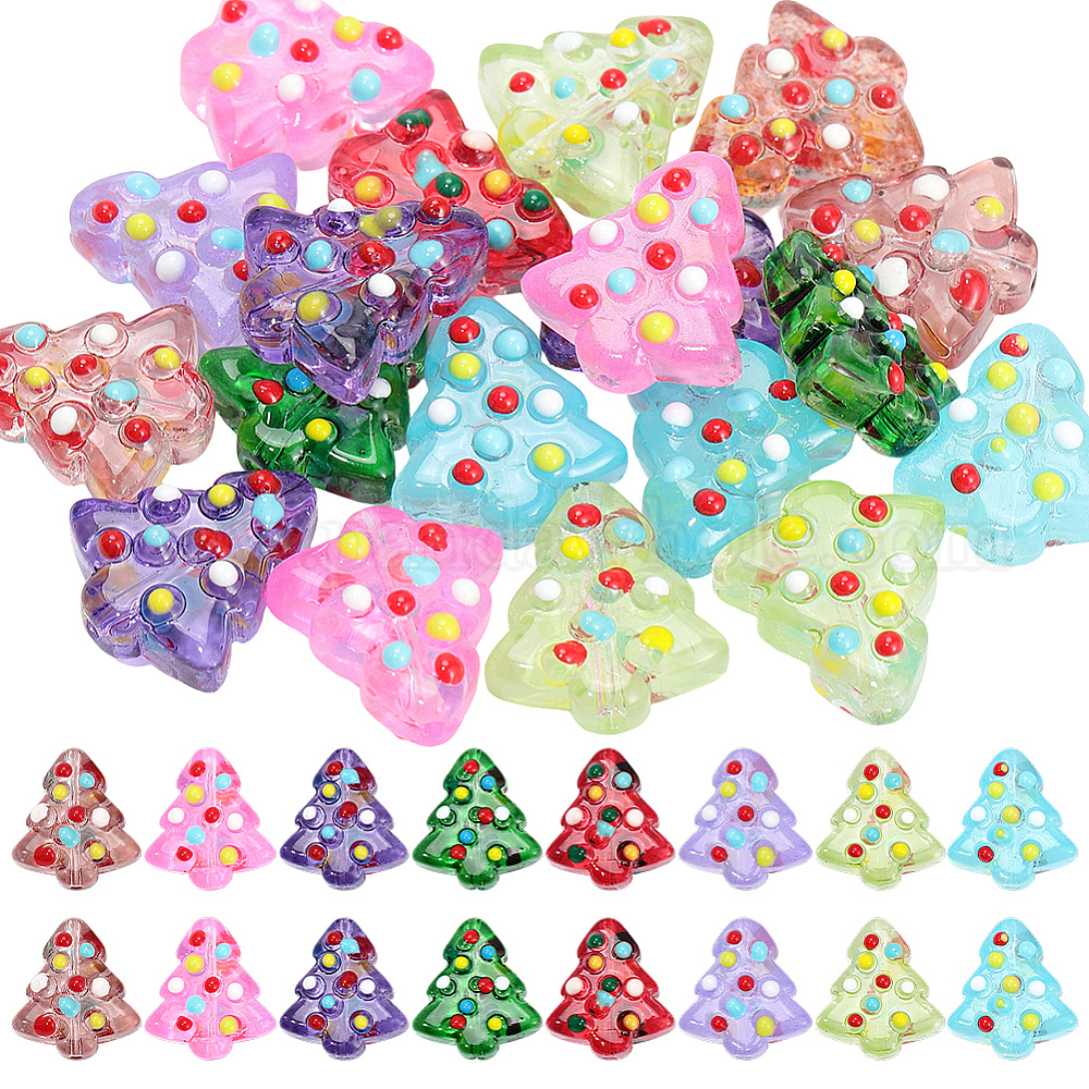 24шт 8цвета бусины из неровного стекла ручной работы, бусины ручной работы, Рождественские елки, окрашенная и подогревом, с эмалью