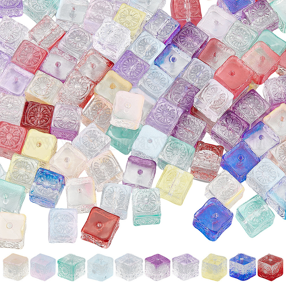 100 шт 10 цвета прозрачные стеклянные бусины, кубические