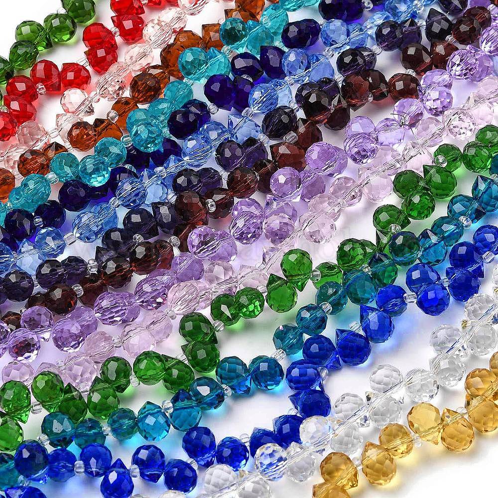 • Прозрачный Прозрачные стеклянные бусины, слезинки, Топ пробуренной, граненые, прозрачные, 10.5x8 мм, отверстие : 1.2 мм, около 95~100 шт / нитка, 61~62 см