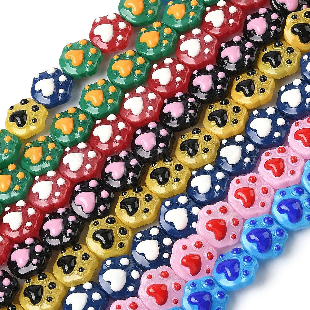Стеклянные эмалевые бусины ручной работы, отпечаток лапы, окрашенная и подогревом
