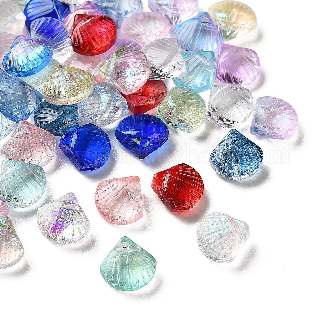 Окрашенные и нагретые прозрачные стеклянные бусины, формы раковины, с блеском порошок
