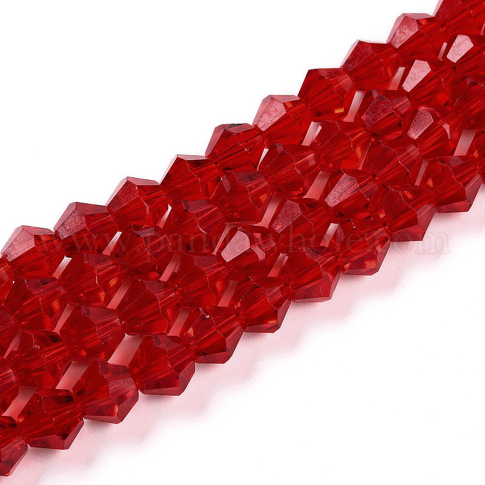 • Темно-Красный Прозрачные стеклянные бусины, граненые, двухконусные, темно-красный, 8x8 мм, отверстие : 1 мм, около 35~40 шт / нитка, 15.7 дюйм