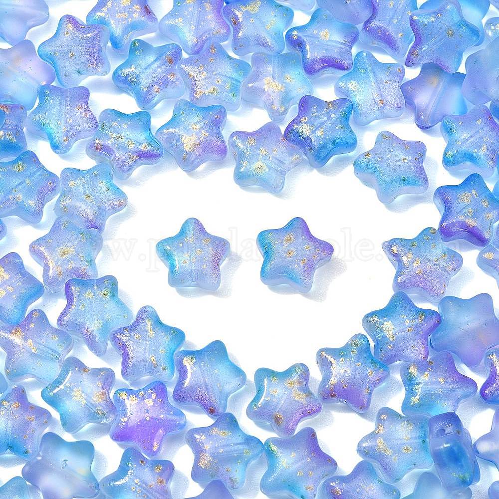 • Васильковый 200 прозрачные стеклянные бусины, золотой фольгой, звезда, васильковый, 8x8x4 мм, отверстие : 1 мм