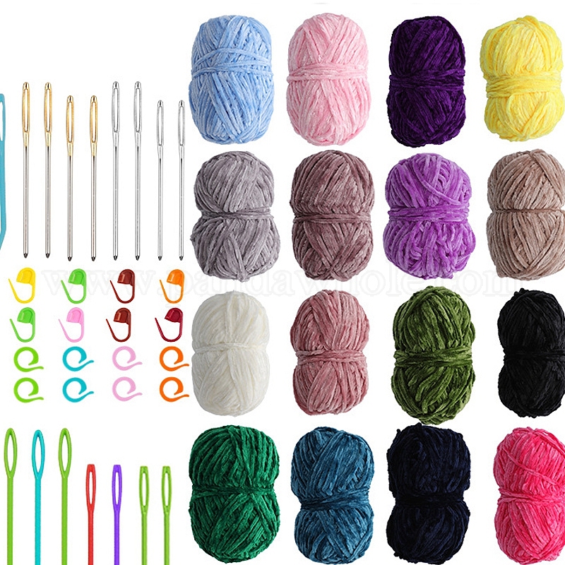 Набор пряжи для вязания, с пряжей синель и маркером петель, для одеяла подушки пряжа для вязания крючком (02XKX6)