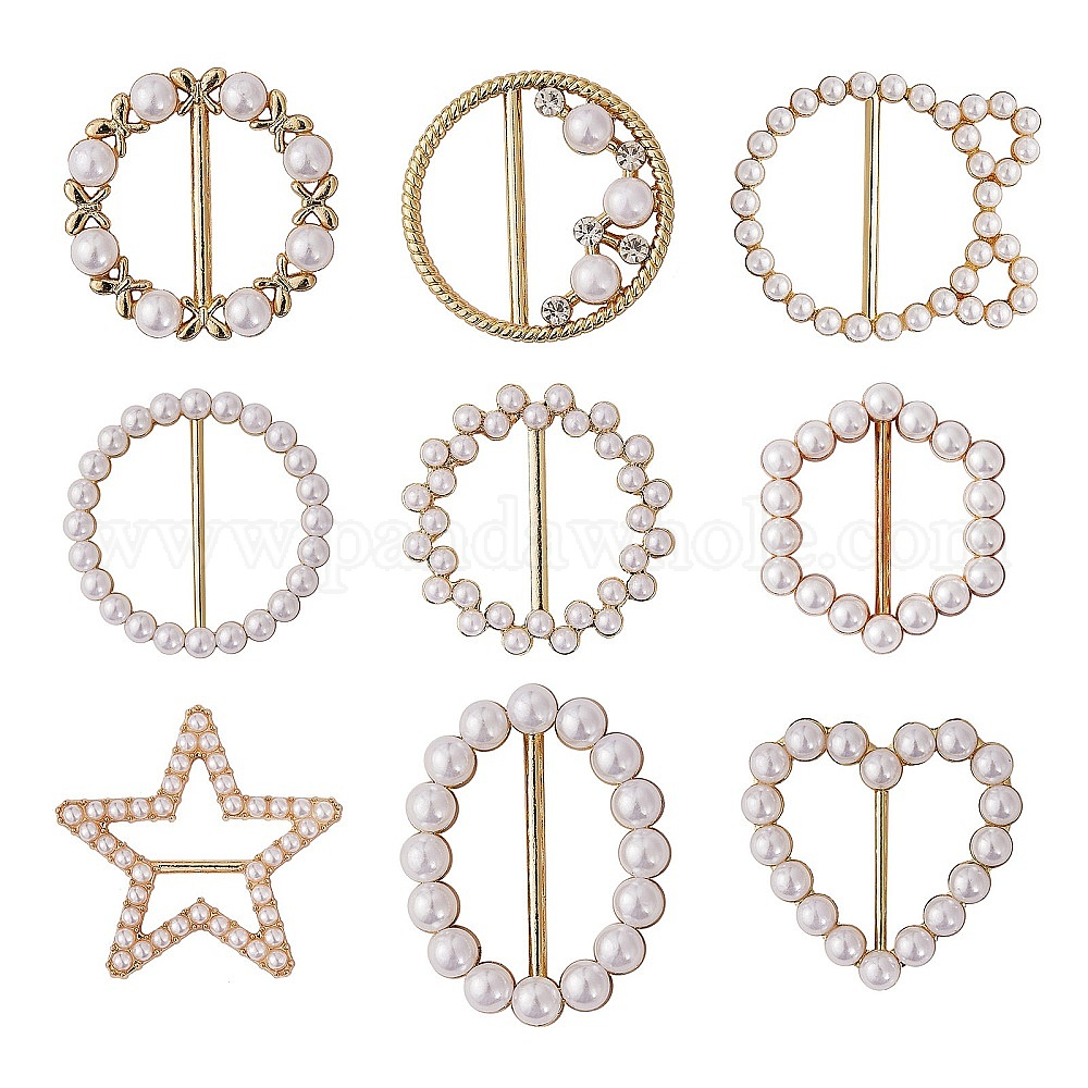 9шт 9 стиль пряжки из сплава, с искусственным жемчугом и стразами, смешанный