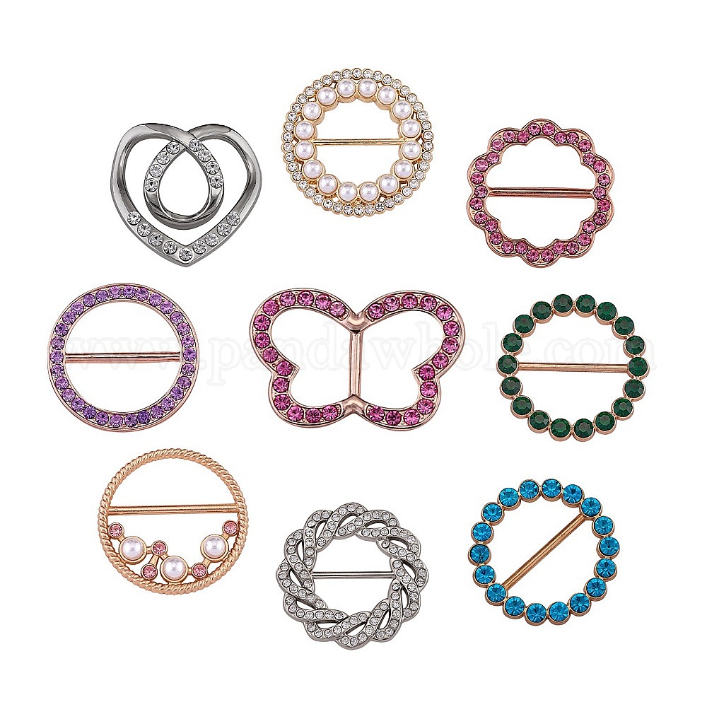 9 шт. 9 стильные пряжки из сплава со стразами, с пластиковой жемчужины, неправильной формы
