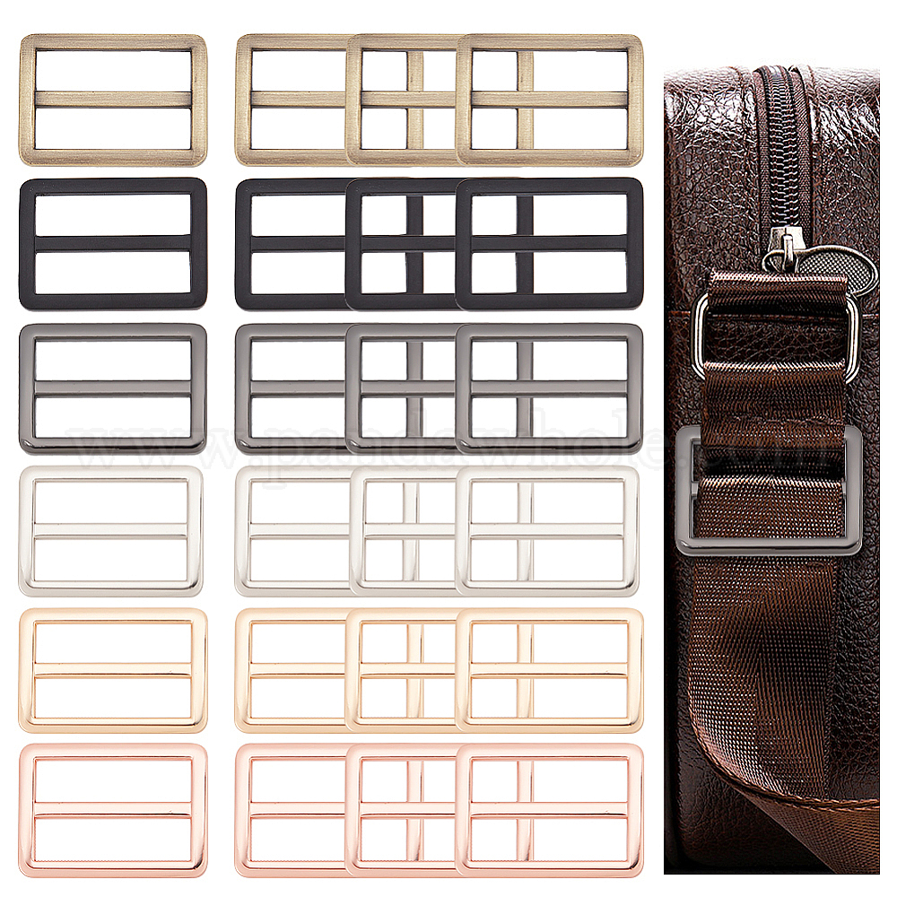 24шт 6 цвета сплава слайдер пряжки, регулируемые застежки, для ремня кожаный ремень сумка для ремня, прямоугольные