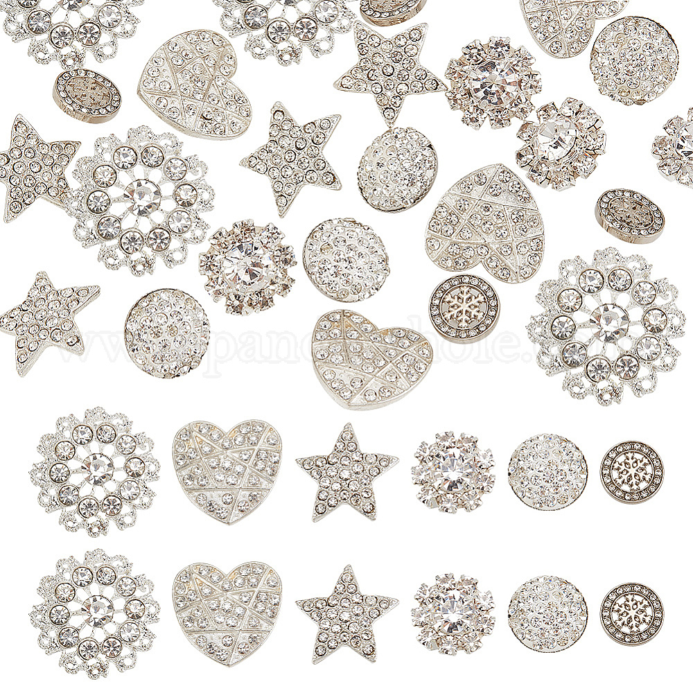 24шт 6 стиль 1-отверстие сплав и латунные пуговицы со стразами на ножке, с полимерной глиной горный хрусталь, разнообразные