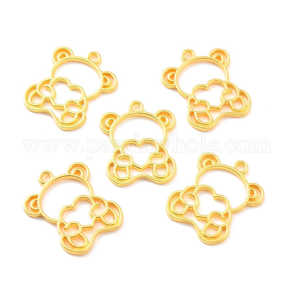 • Золотой Подвесные подвески из сплава, для diy уф смолы, эпоксидная смола, Прессованные цветочные украшения, без кадмия и без свинца, люблю медведя, золотые, 33.5x27.5x2 мм, отверстие : 3 мм