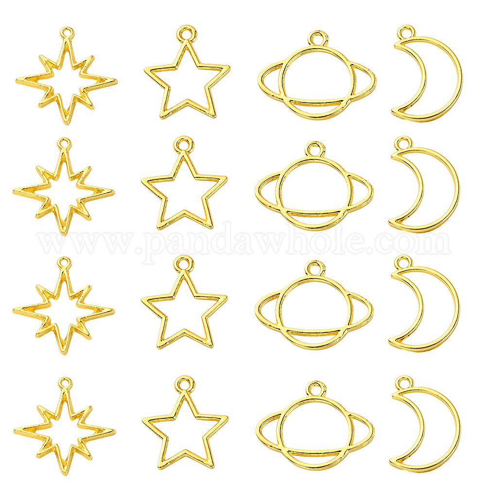 • Золотой 20 шт 4 стиль сплава подвески с открытой задней лицевой панелью, для diy уф смолы, эпоксидная смола, Прессованные цветочные украшения, без кадмия и без свинца, планета и звезда и луна, золотые, 20~25x16~26x1~2 мм, отверстие : 2 мм, 5 шт / стиль