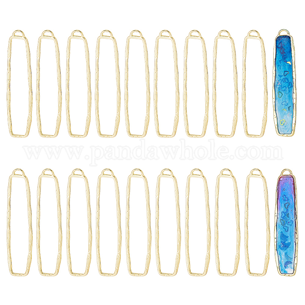 • Золотой 20 большие подвески из сплава с открытой задней панелью, для diy уф смолы, эпоксидная смола, Прессованные цветочные украшения, прямоугольные, золотые, 60.5x14x1.5 мм