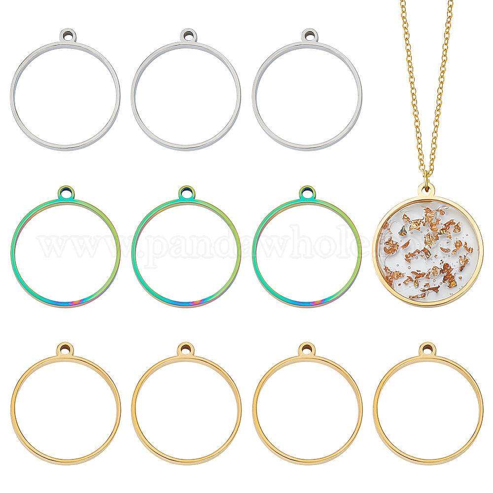 12 шт. 3 стили 304 плоские круглые подвески из нержавеющей стали с открытой задней панелью, для diy уф смолы, эпоксидная смола, Прессованные цветочные украшения