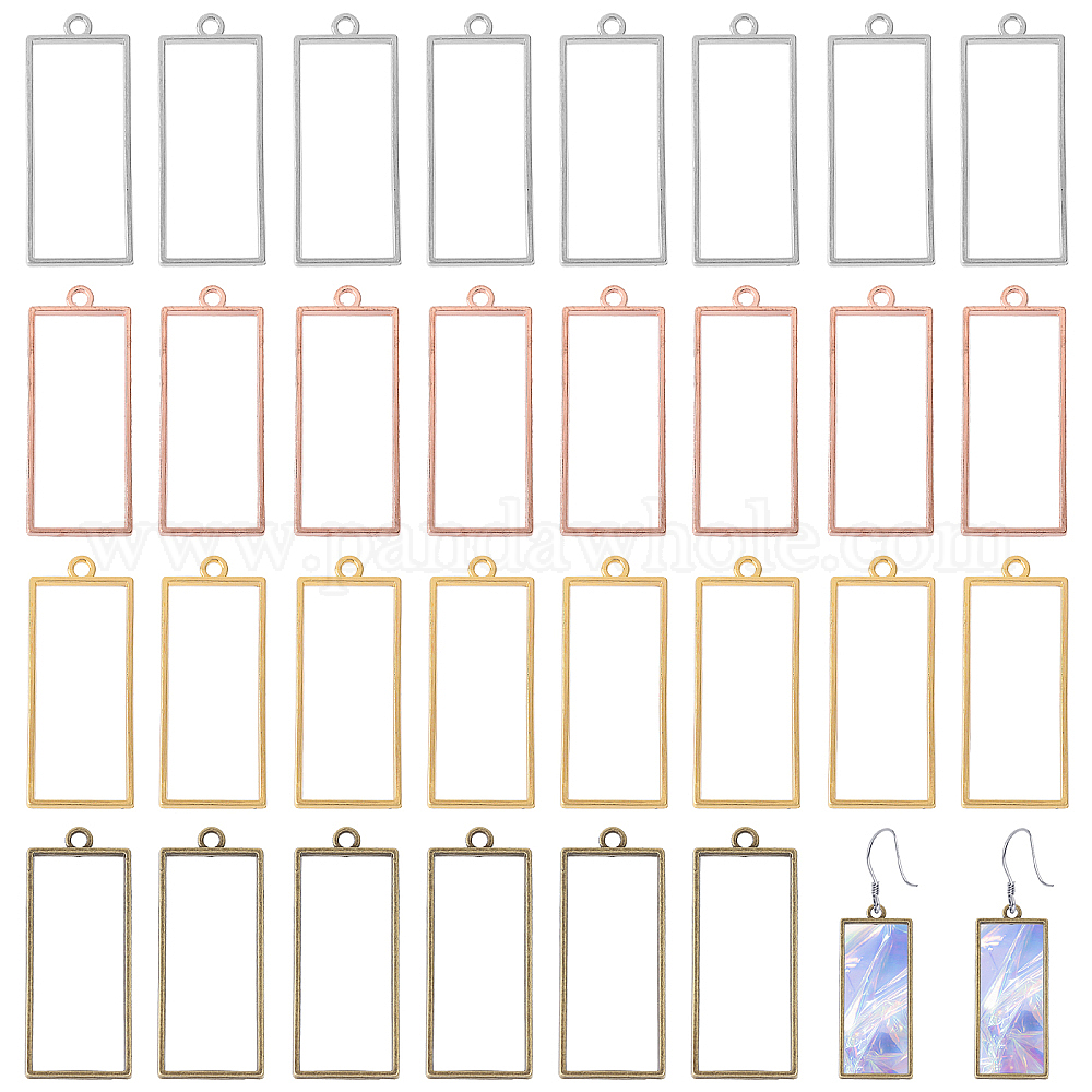 48 шт. 4 цвета сплав открытая задняя часть оправа прямоугольные подвески, для diy уф смолы, эпоксидная смола, Прессованные цветочные украшения