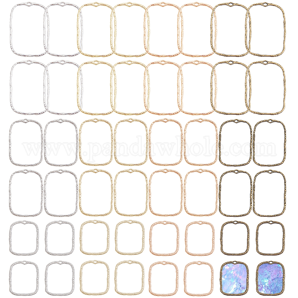 48шт 12 стили подвески из сплава с открытой спиной, для diy уф смолы, эпоксидная смола, Прессованные цветочные украшения, прямоугольные