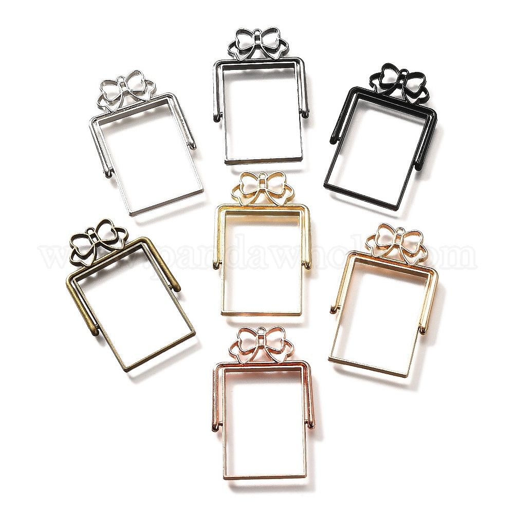 • Античная Бронза Подвесные подвески из сплава, для diy уф смолы, эпоксидная смола, без кадмия, без никеля и без свинца, прямоугольник с бантом, античная бронза, 48.5x31x3.5 мм, отверстие : 1.5 мм
