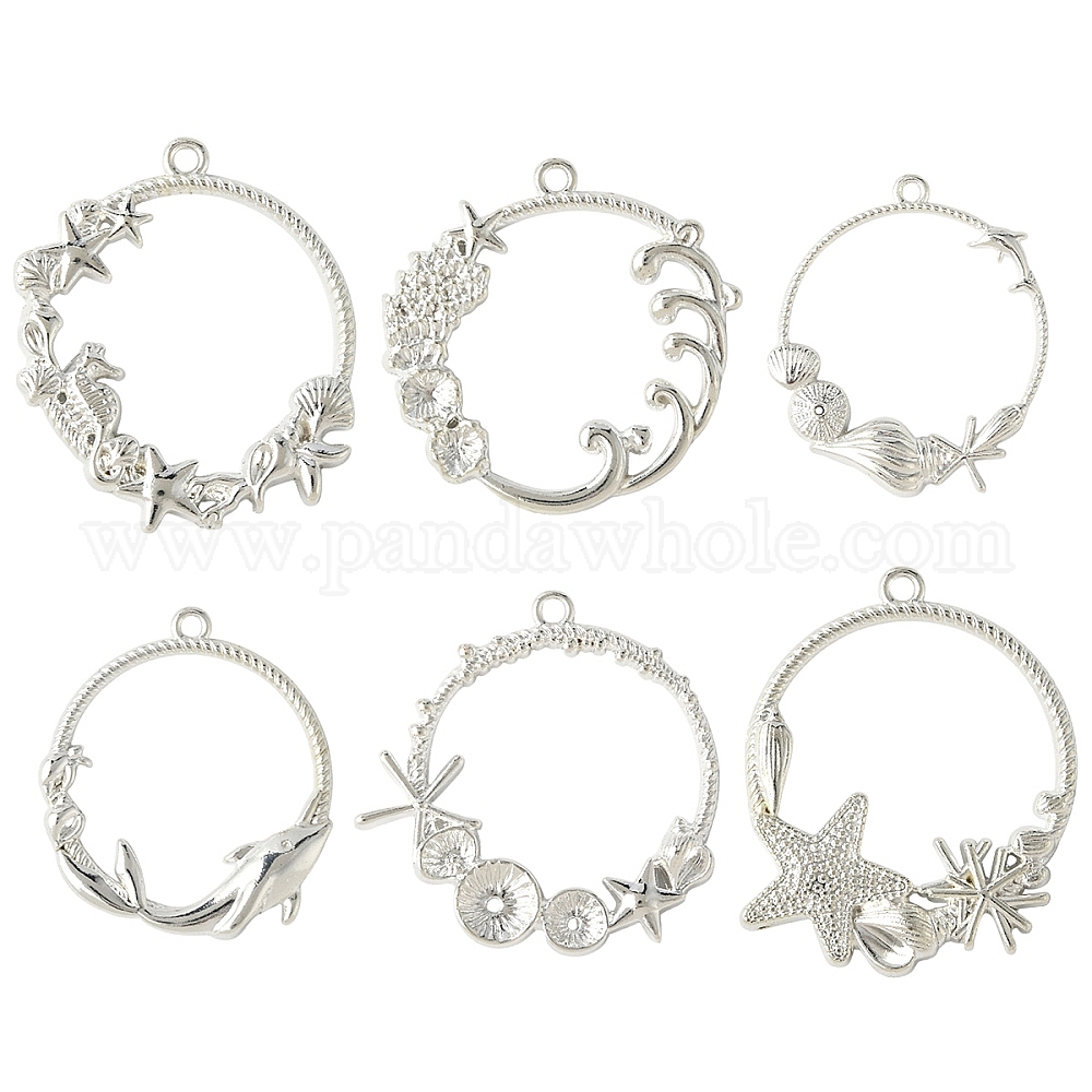 12 шт 6 стиль сплава подвески с открытой задней лицевой панелью, для diy уф смолы, эпоксидная смола, Прессованные цветочные украшения, океанский стиль, без никеля , разнообразные