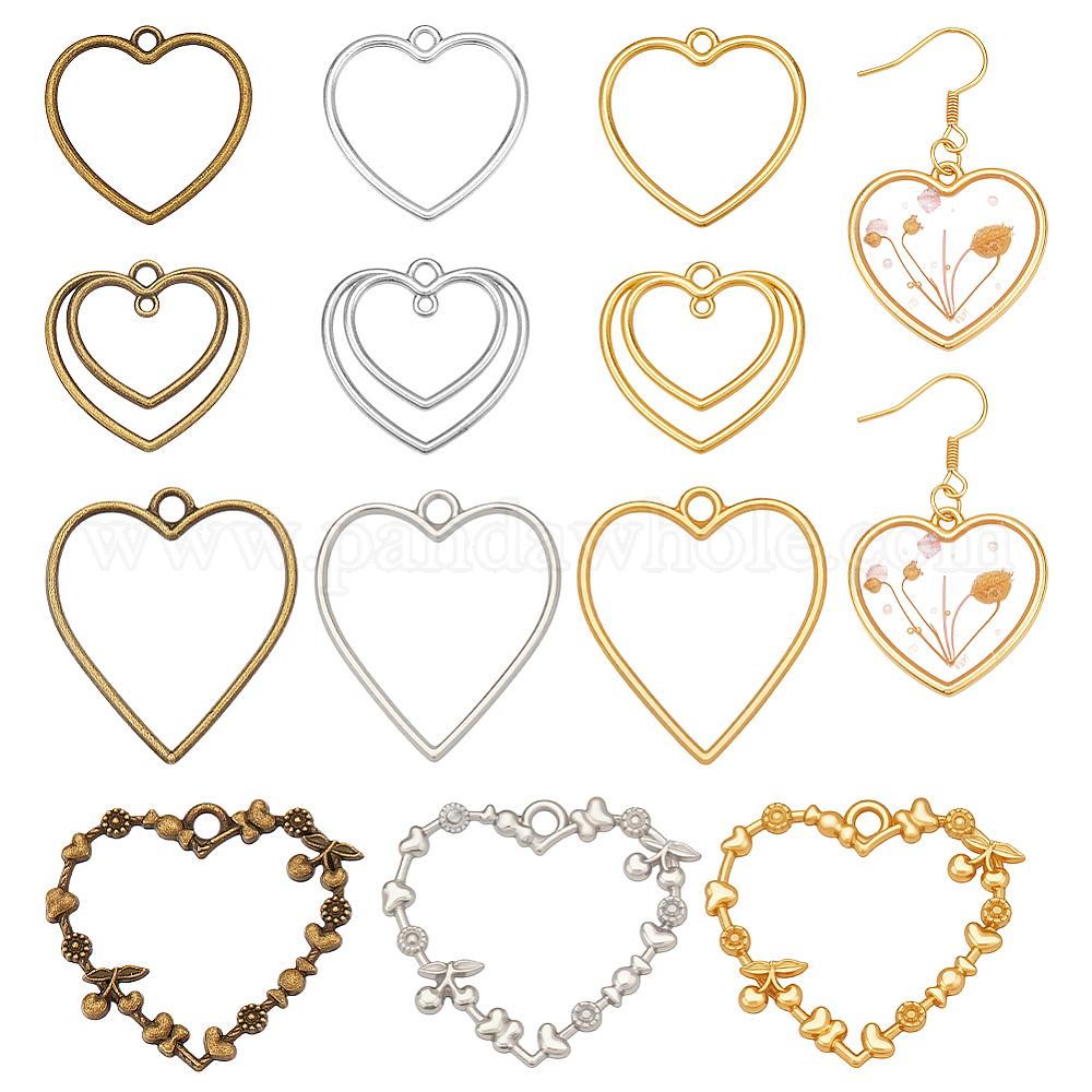 48 шт 12 стили подвески с открытой задней панелью из цинкового сплава, для diy уф смолы, эпоксидная смола, сердце