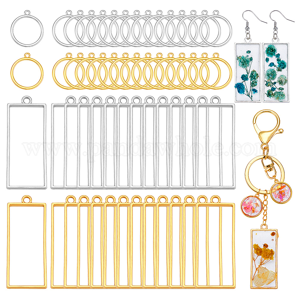 • (52) Непрозрачная лаванда 100 шт. 4 подвески из сплава с открытой задней оправой в форме прямоугольника и кольца, для diy уф смолы, эпоксидная смола, Прессованные цветочные украшения, разноцветные, 20~48.5x17~20x3.5 мм, отверстие : 2.7 мм, внутренний диаметр: 13.5~41x13.5~17 мм, 25 шт / стиль