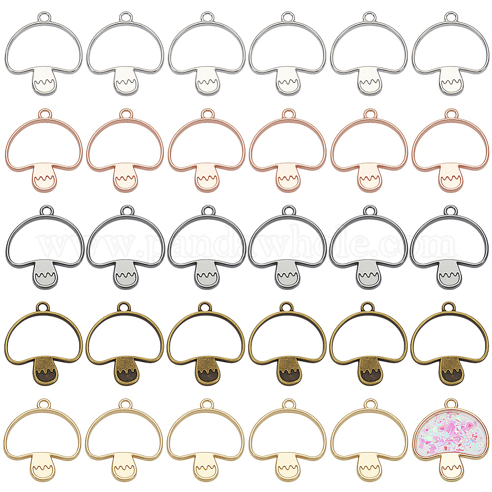 30 шт. 5 цвета сплава открытая задняя часть подвески безель, для diy уф смолы, эпоксидная смола, Прессованные цветочные украшения, грибное очарование