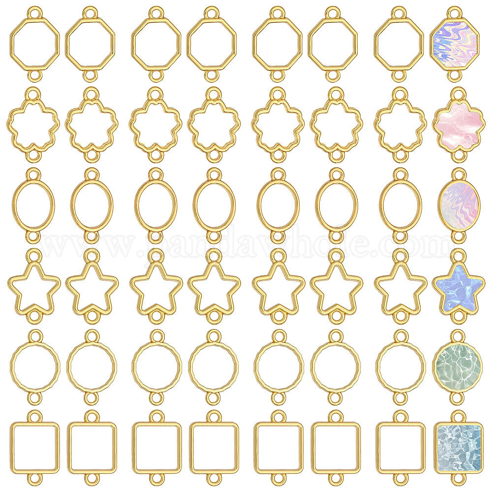 • Золотой 48 шт. 6 стили цинковый сплав открытая задняя рамка соединительные подвески, для diy уф смолы, эпоксидная смола, Прессованные цветочные украшения, разнообразные, золотые, 16.5~17.5x10~12x1.5 мм, отверстие : 1.5~1.7 мм, 8 шт / стиль