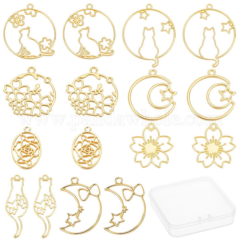 • Золотой 32 шт. 8 стили цинковый сплав котенок открытая спина безель подвески, для diy уф смолы, эпоксидная смола, Прессованные цветочные украшения, золотые, 4 шт / стиль