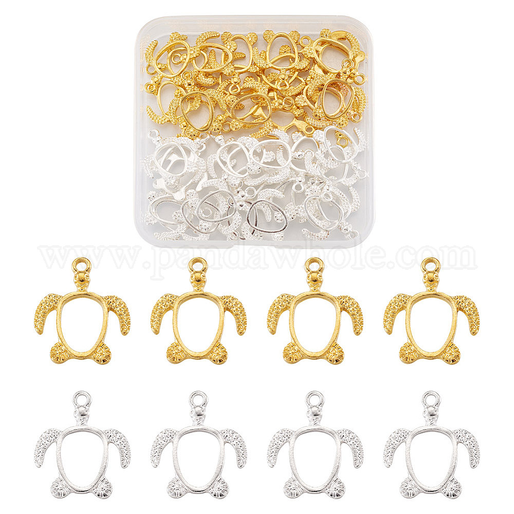• Золотой & Серебряный 40 шт. 2 цвета сплава открытая задняя часть подвески безель, для diy уф смолы, эпоксидная смола, Прессованные цветочные украшения, черепаха, золотой и серебряный, 21.5x18.5x2.5 мм, отверстие : 2 мм, 20 шт / цвет