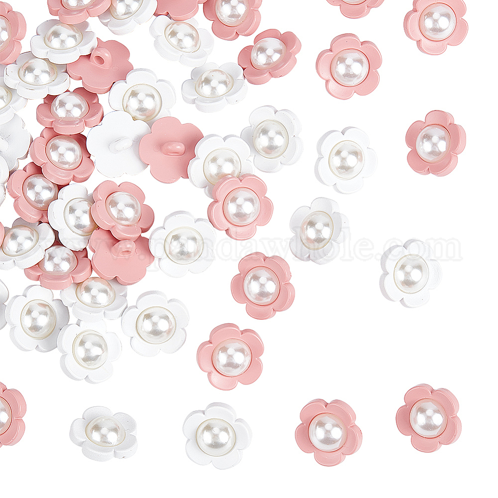 50шт. 2 цвета 1-отверстие пластиковые пуговицы на ножке, с абс пластмассовой имитационной жемчужиной, цветок