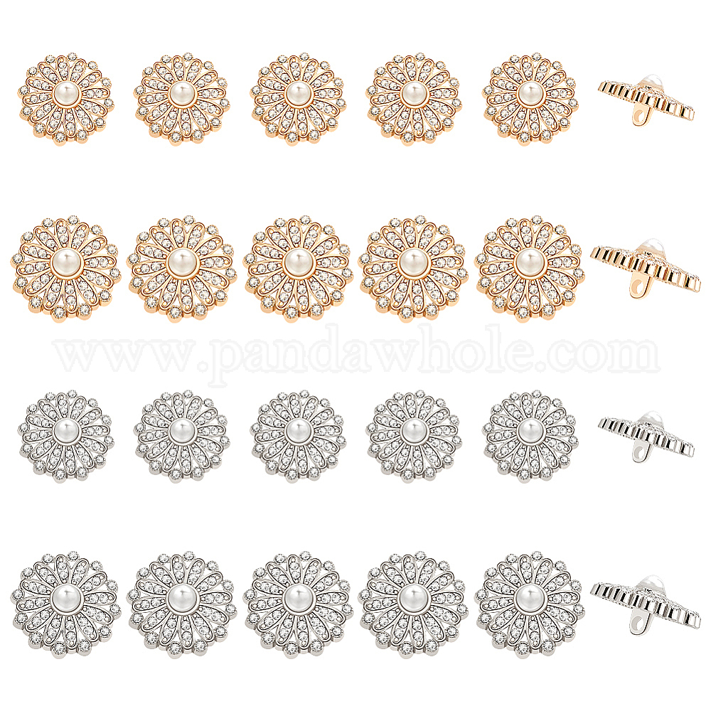 24шт 4 стиль пуговицы со стразами из цинкового сплава, с пластиковой имитацией жемчуга, 1-луночное, цветок