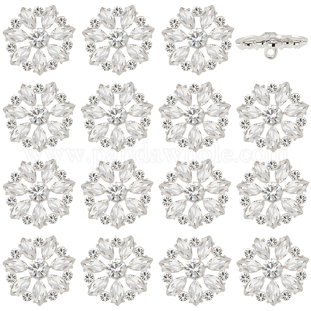 12 шт. 1 пуговицы с хвостовиком из сплава с отверстиями, со стеклянными стразами, цветок