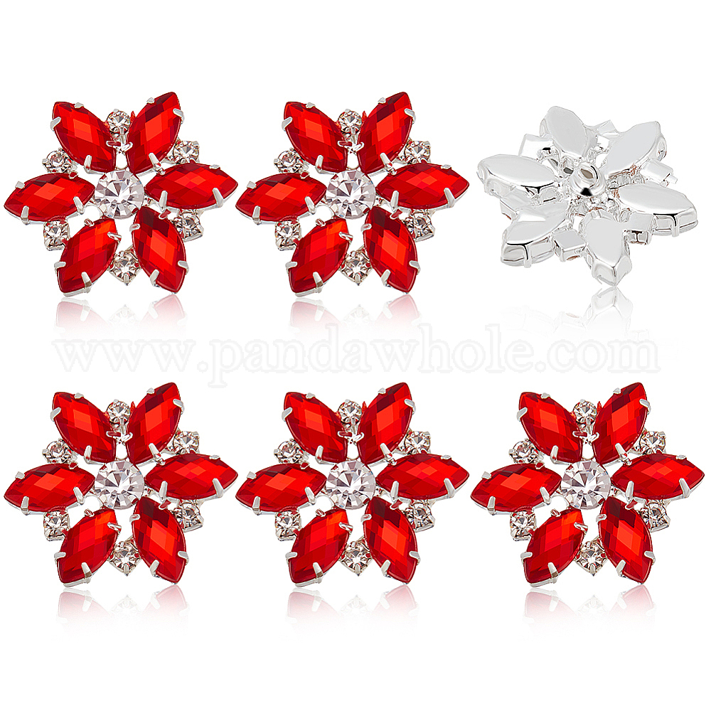 6шт 1-отверстие латунные пуговицы на хвостовике, со стеклянными стразами, цветок