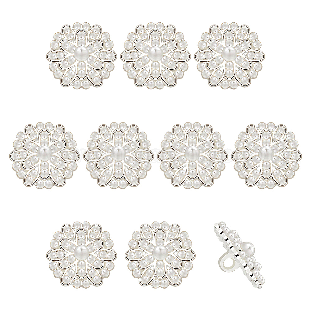 10 шт. 1 пуговицы с хвостовиком из сплава с отверстиями, с пластиковой бусиной, имитирующей жемчуг, цветок