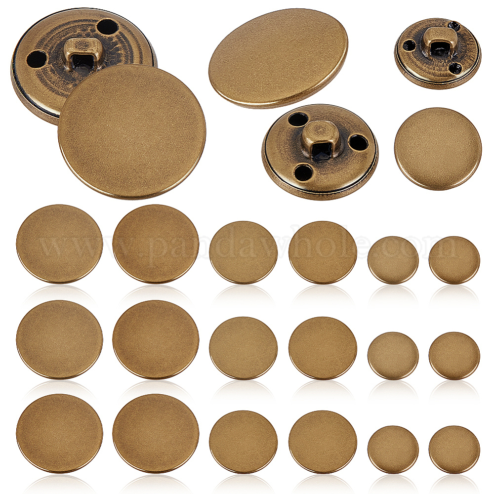60 шт 3 стиль латунные пуговицы с хвостовиком, плоско-круглые