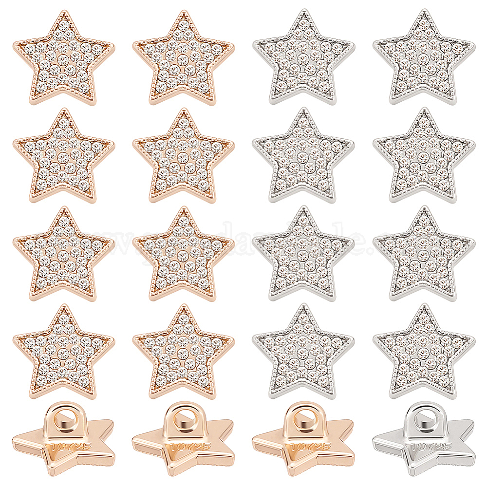 20 шт. 2 цвета пуговиц на хвостовике из цинкового сплава со стразами, 1-луночное, звезда