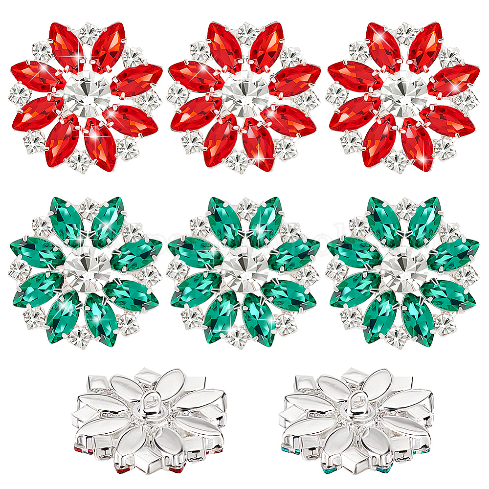 8 шт. 2 цвета 1-отверстие сплав горный хрусталь хвостовик кнопки, со стеклом, цветок (02QD87)