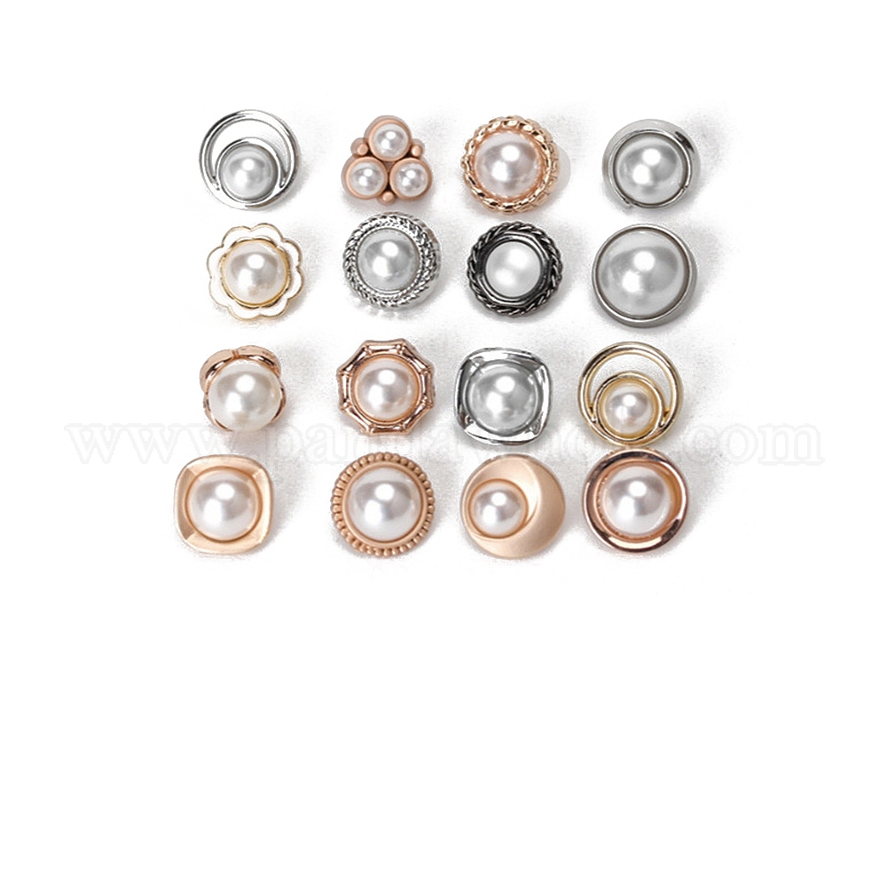 Кнопки сплава хвостовиком, с пластиковыми бусинами из искусственного жемчуга