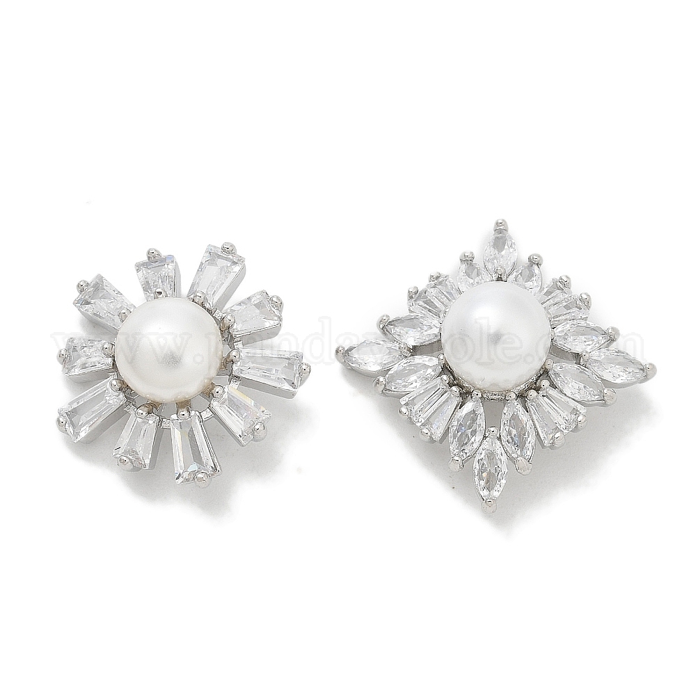 Стойка покрытие латунные микропаве прозрачные кубические циркониевые кнопки, с ABS имитации жемчуга, долговечный, без свинца и без кадмия, 1-луночное, платина