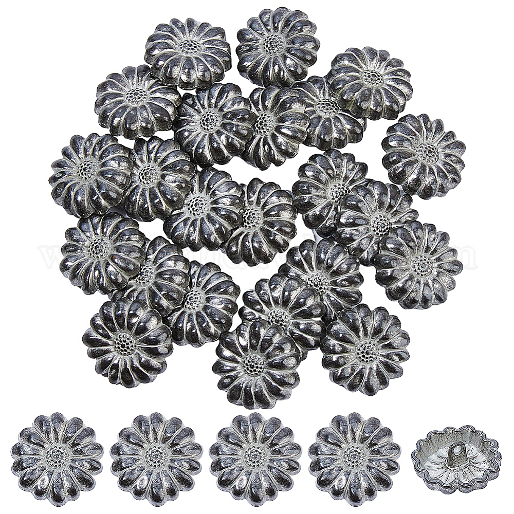 • Античное Золото 24 шт. 1-образные пуговицы в тибетском стиле из сплава с ножкой, цветок, античное золото , 22x9 мм, отверстие : 2 мм
