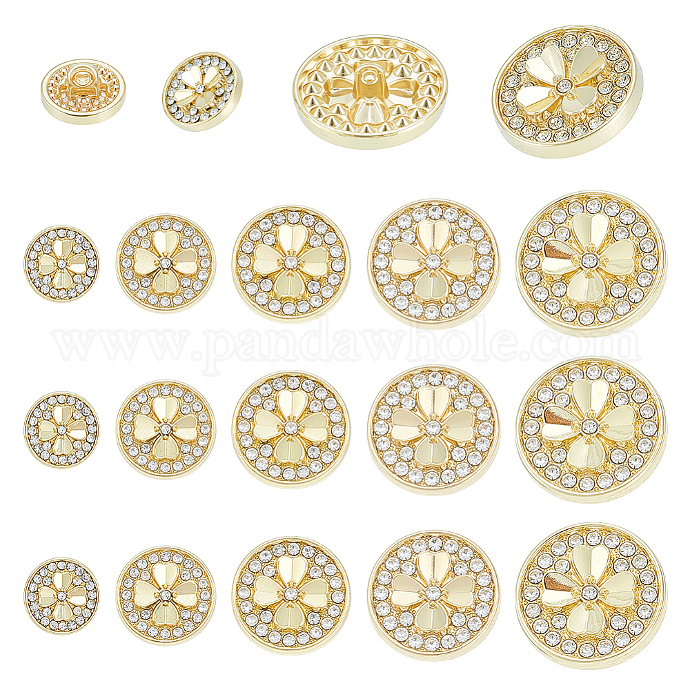 • Light Gold 15шт. 5 стили 1-отверстие пуговицы из сплава на хвостовике, со стразами, плоские круглые с клевером, золотой свет, 11.5~23x6.5~8.5 мм, отверстие : 2 мм, 3 шт / стиль