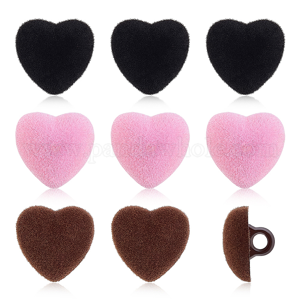 • (52) Непрозрачная лаванда 36 шт. 3 цвета 1 пуговицы с флокированной смолой и отверстием на ножке, сердце, разноцветные, 15x15.5x10 мм, отверстие : 3 мм, 12 шт / цвет