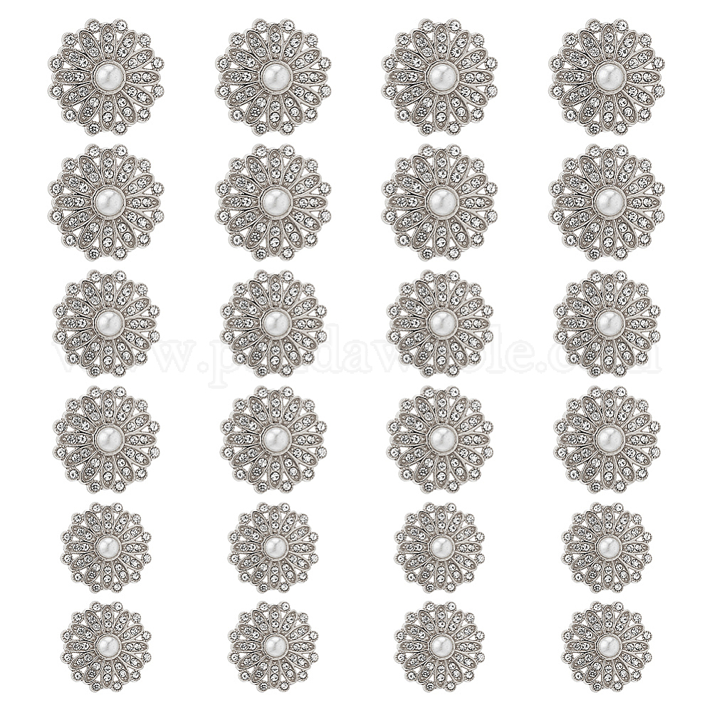 24шт 3 стили сплав горный хрусталь хвостовик кнопки, с имитацией жемчужина бисера, цветок, 1-луночное