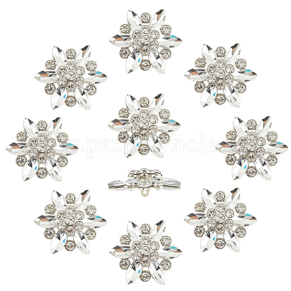 10шт 1-отверстие цинковый сплав стержень кнопки, со стразами, цветок, платина