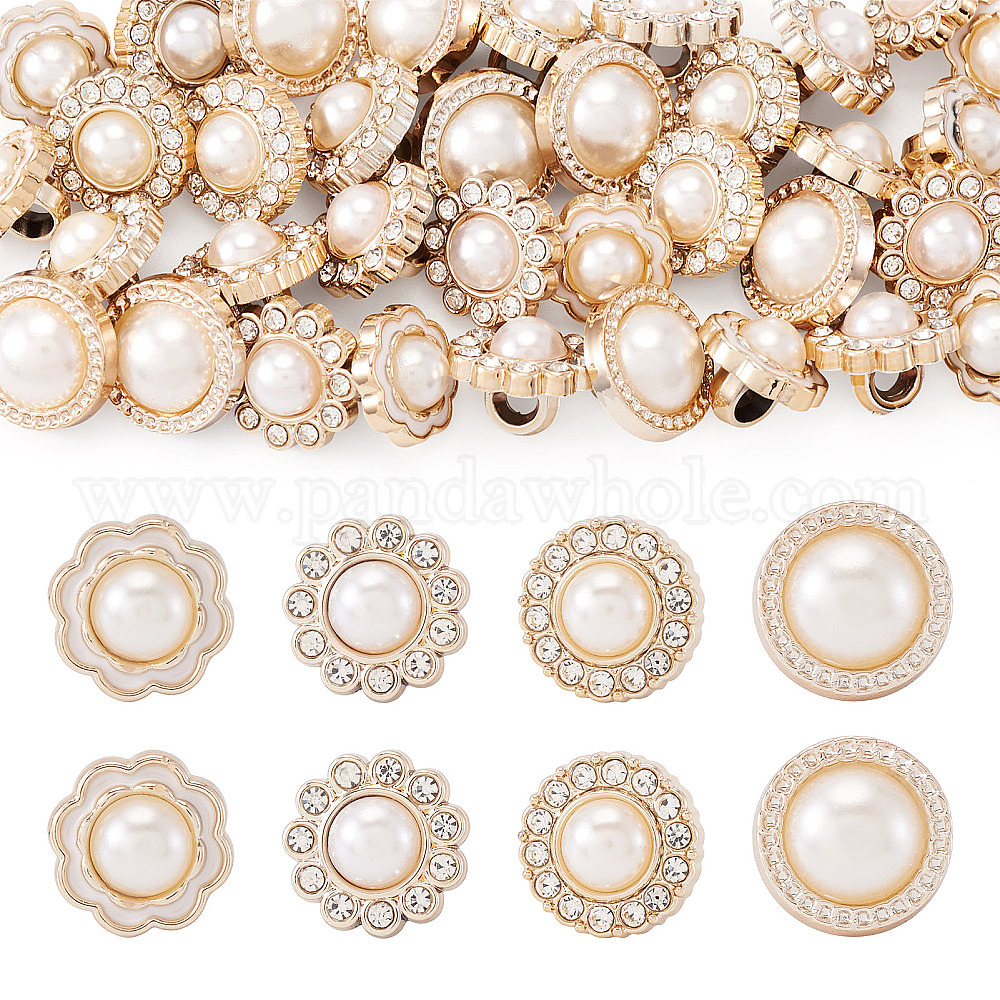 40шт. 4 стилей 1 акриловые пуговицы с отверстиями и стразами, с имитацией жемчужина бисера, аксессуары для одежды, разноцветные