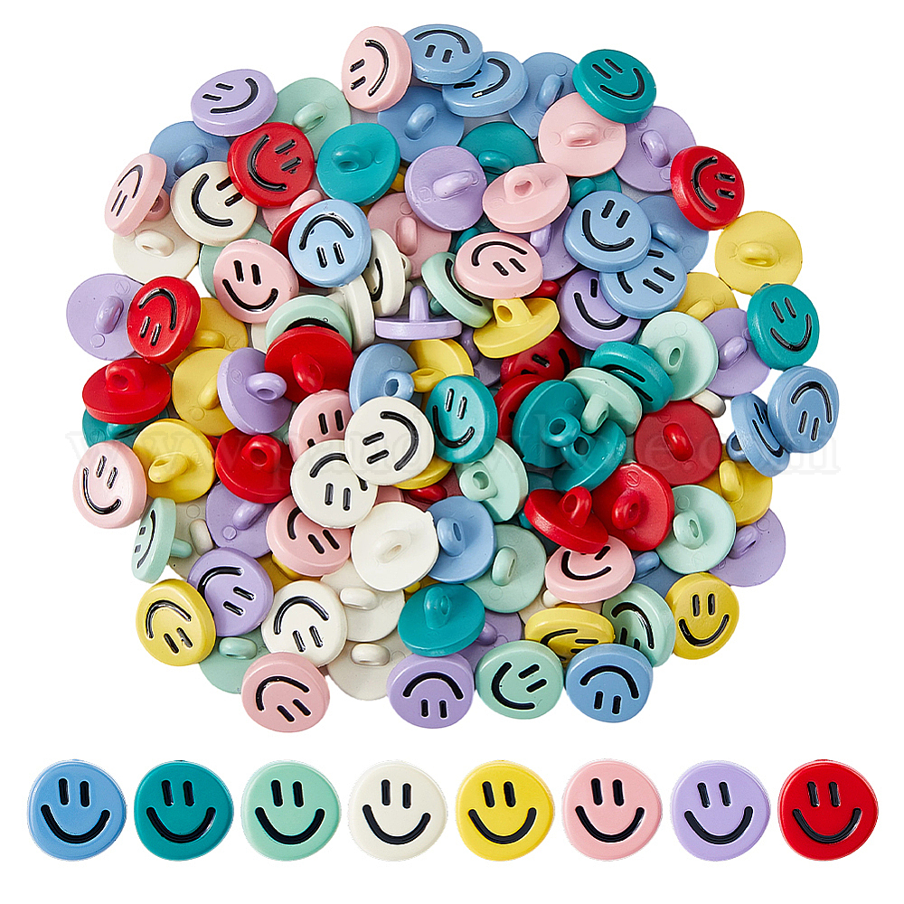 120шт 8 цвета пластиковые пуговицы на ножке, 1-луночное, улыбающееся лицо