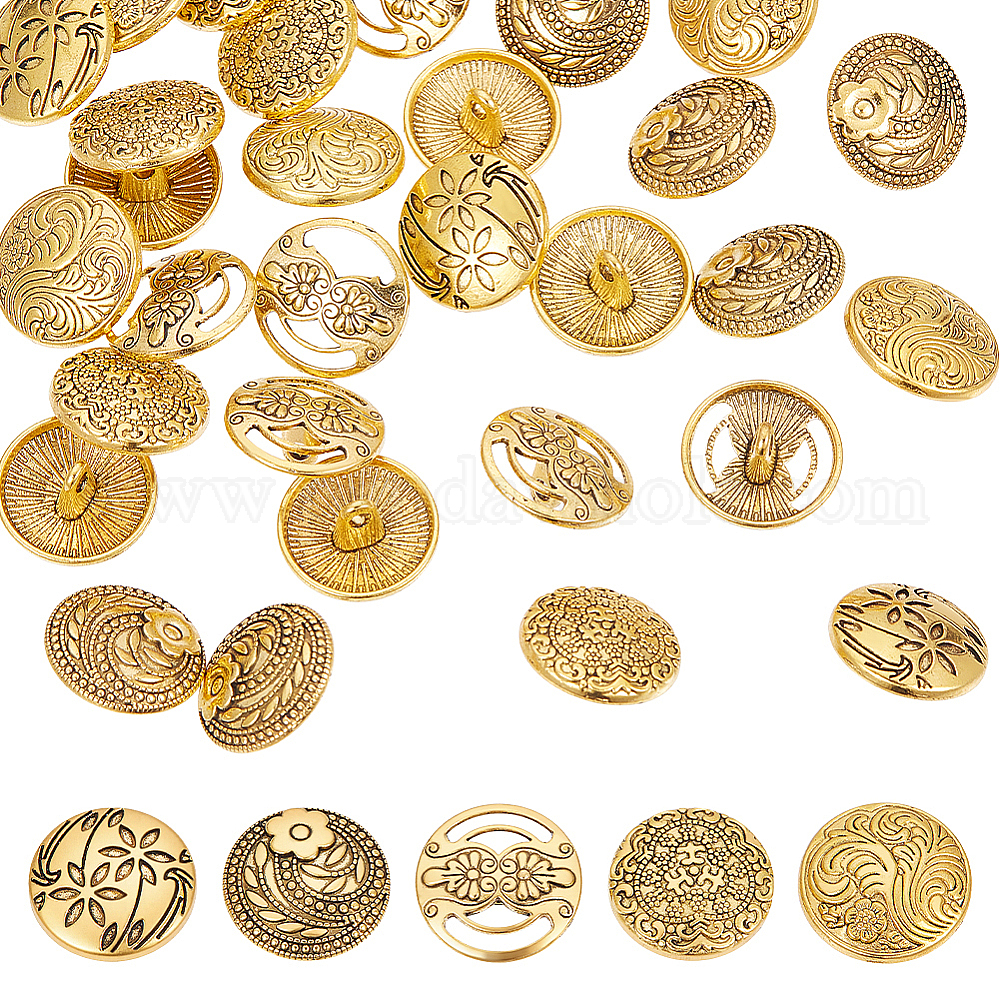 30 шт. 5 стили пуговицы из цинкового сплава с хвостовиком, 1-луночное, плоская круглая с цветочным узором