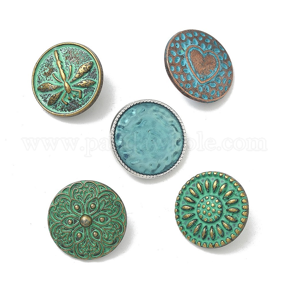 Тибетский стиль кнопки сплава хвостовиком, плоско-круглые, 1-луночное