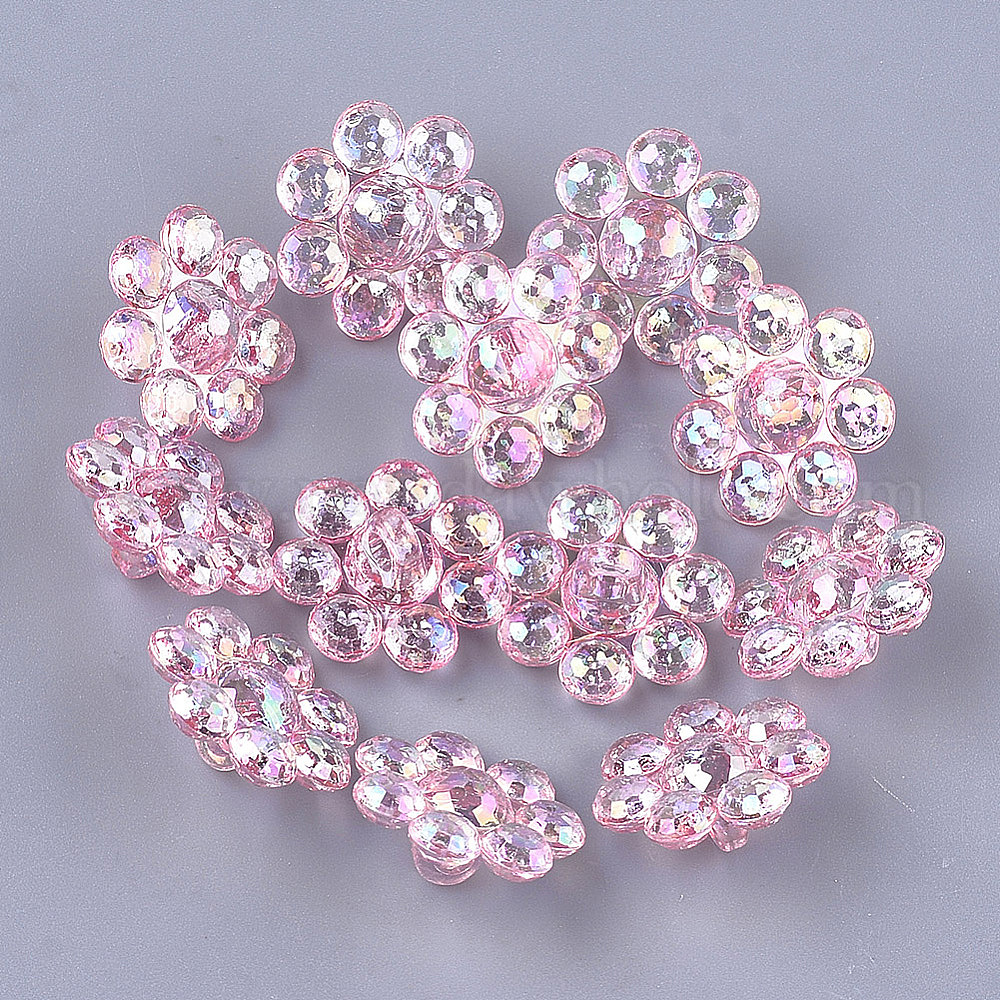 • Pink Прозрачные как пластиковые кнопки хвостовика, жемчужные, граненые, цветок, розовые, 17.5~18x17.5~18x9 мм, Отверстие : 3 мм , около 850 шт / 500 г