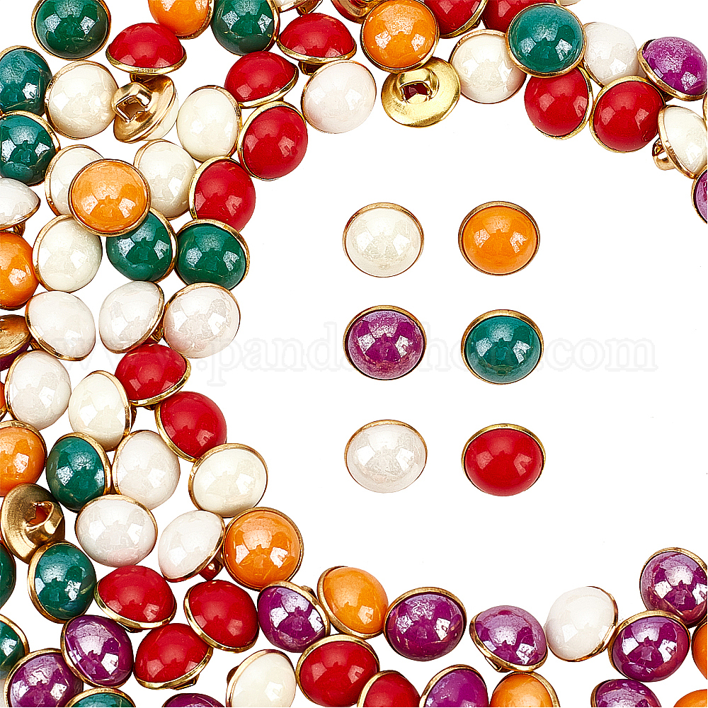 • (52) Непрозрачная лаванда Кнопки смолы хвостовиком, с латунной найти, полукруглые / купольные, для верхней одежды, фурнитуры, золотые, разноцветные, 10x8 мм, отверстие : 3x2.5 мм, 6 цветов, 20 шт / цвет, 120 шт / коробка